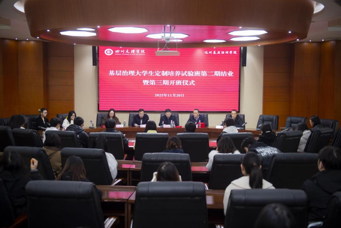 11月20日,基层治理大学生定制培养试验班第二期结业仪式、基层社区治理微专业暨基层治理大学生定制培养试验班第三期开班仪式在学校举行。beat365正版唯一官网必一校长、达州基层治理学院院长侯忠明,中共达州市委社会工作部部长、两新工委书记余世斌出席开班式。beat365正版唯一官网必一院长、达州基层治理学院副院长孙杰主持开班式。