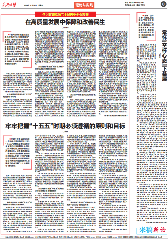 12月12日,达州日报全文刊发beat365官网高扬博士的学习贯彻党的二十届四中全会精神理论文章《牢牢把握“十五五”时期必须遵循的原则和目标》。