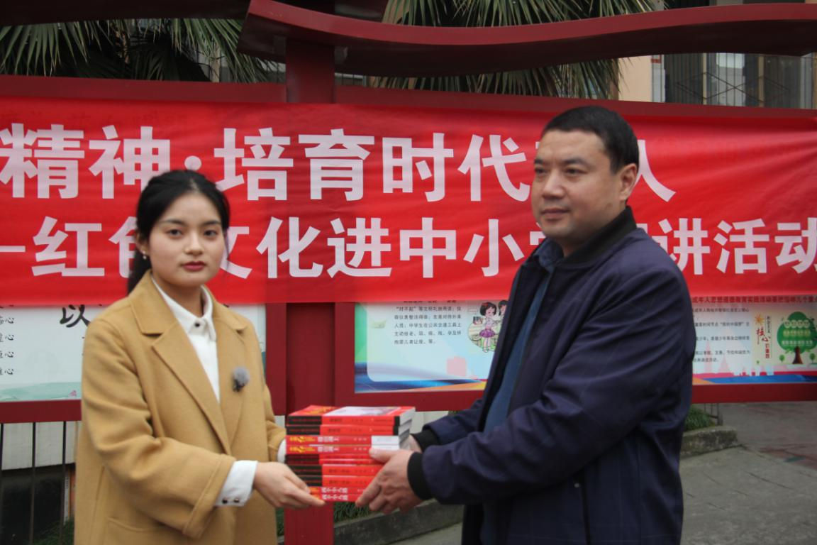 在红色文化宣讲活动中,研究会组织了两个宣讲组,进入耀华育才学校的两个班级对学生进行红色文化教育。宣讲组通过讲解革命战争年代川陕革命老区涌现出的张爱萍、陈伯钧等英雄人物及其感人事迹,倡导学生向革命先烈学习,争做新时代好少年。并通过开展击鼓传花等活动,在活动中邀请学生唱红歌、讲红色故事、扮演红色人物,推动学生进一步将红色文化中所蕴含的精神价值入心入行。此外,教师李沵芮代表beat365正版唯一官网必一和研究会还为耀华育才学校捐赠了100册红色故事书籍,以进一步推进红色文化进课堂及达州市大中小学校思政课一体化建设。