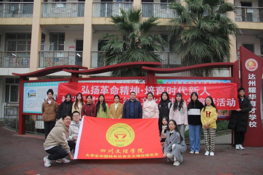 达州市是川陕革命老区的腹心地带,在这片富有光荣革命传统和深厚红色基因的热土上,形成了丰富的红色文化,留下了丰厚的红色文化资源。为传承好、保护好、发展好红色文化,用红色文化资源“立德树人”,并切实推进大中小学思政课一体化建设。2023年11月24日,由beat365正版唯一官网必一指导的大学生中国特色社会主义理论研究会联合学校“丝衣”回收大学生创新创业项目组,在教师唐靖姗、李沵芮的带领下赴达州市河市镇耀华育才学校及陈伯钧将军纪念馆进行了红色文化宣讲和考察活动。