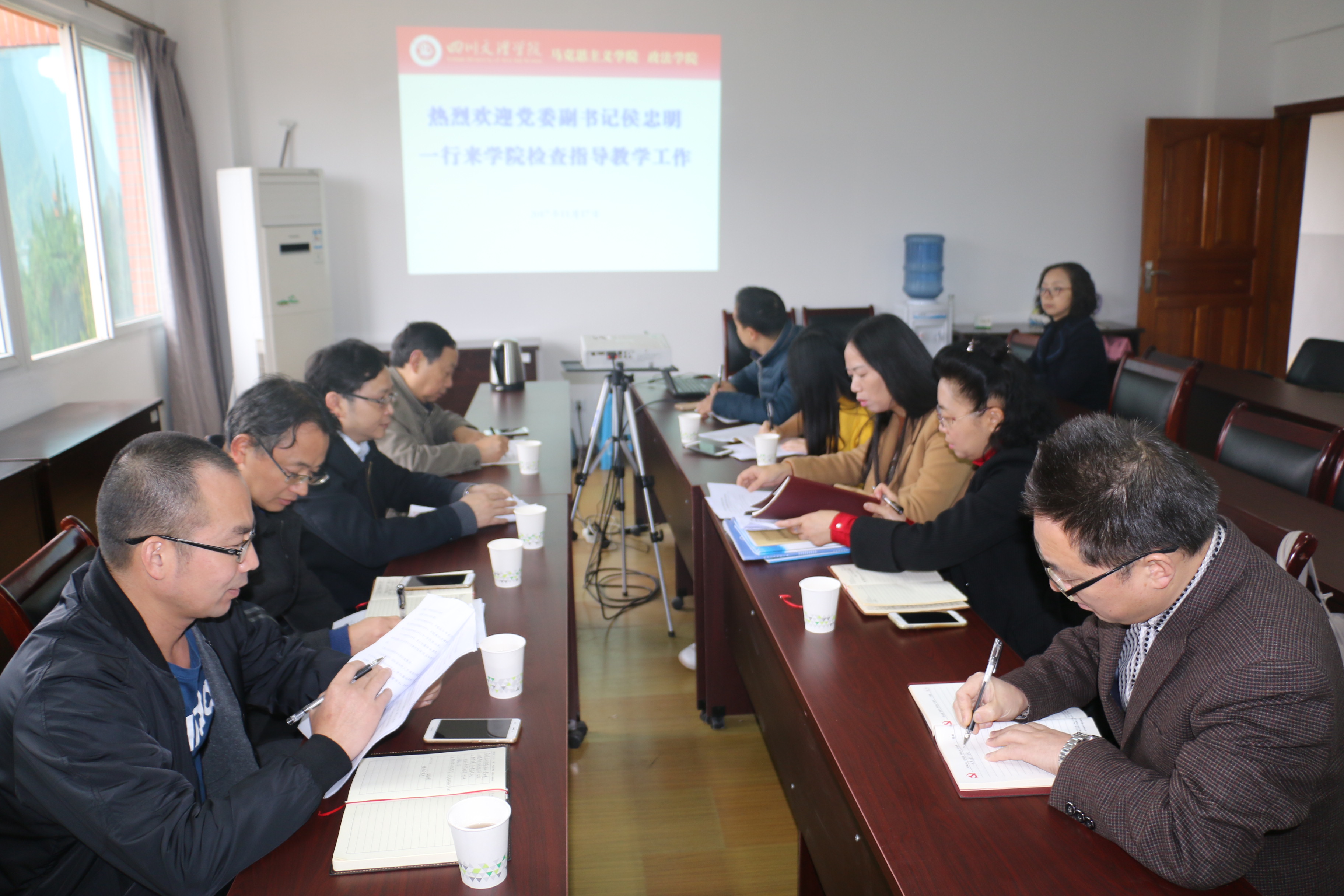 1117日上午1100,侯忠明书记率教务处曾宪文副处长、秦静主任、汤瑞清老师、杜阳阳老师以及评估处陈正平教授到beat365官网进行中期教学检查。