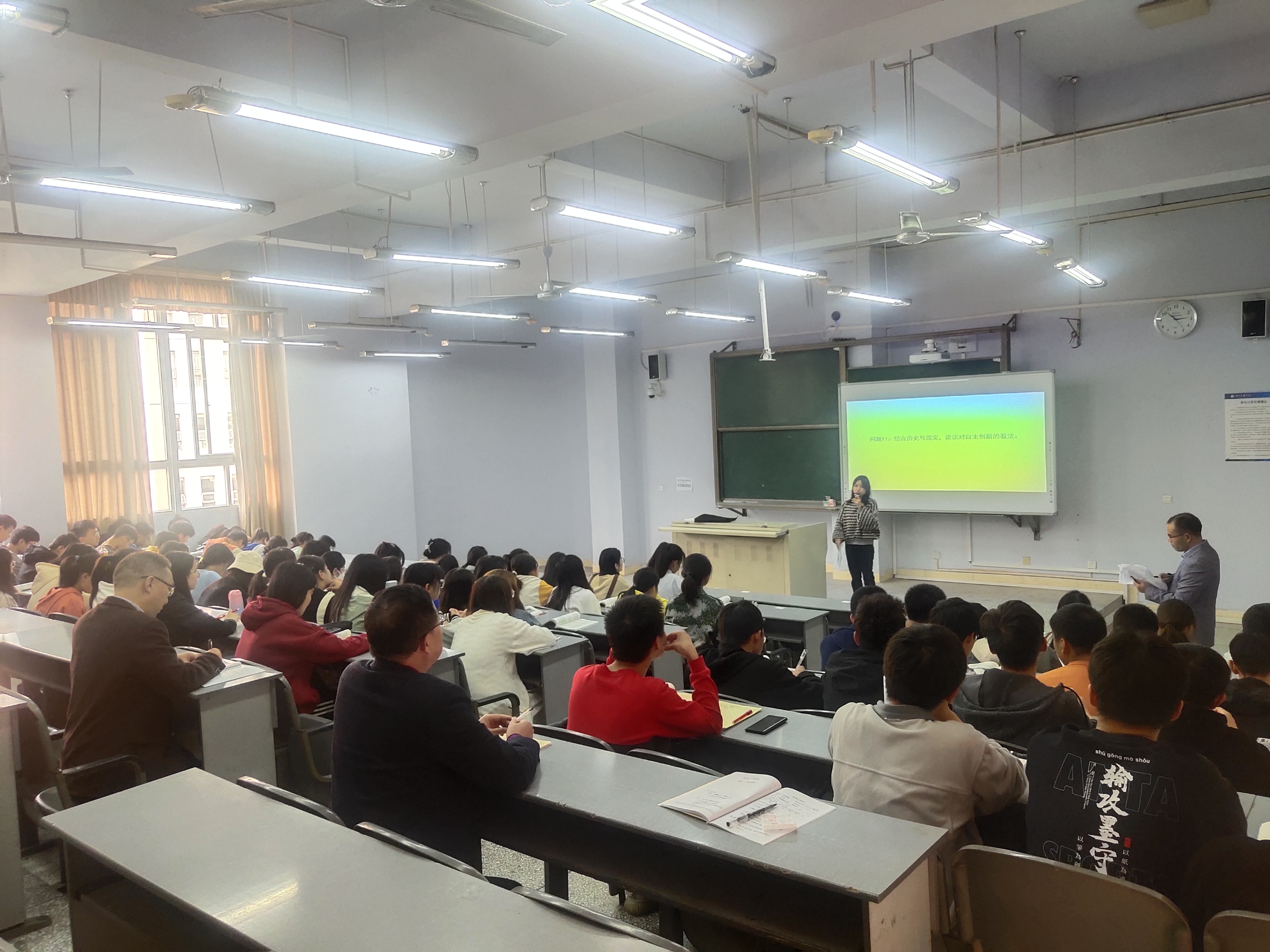 刘春辉和孙杰先后听取了张善喜、鲁成和耿泽三位老师的课程。听课结束后,院领导进行了全面点评,并指出:教师备课充分,重点突出,紧密联系学生实际,精选鲜活案例,讲解深入浅出。学生听课认真,秩序井然,课堂教学效果较好。