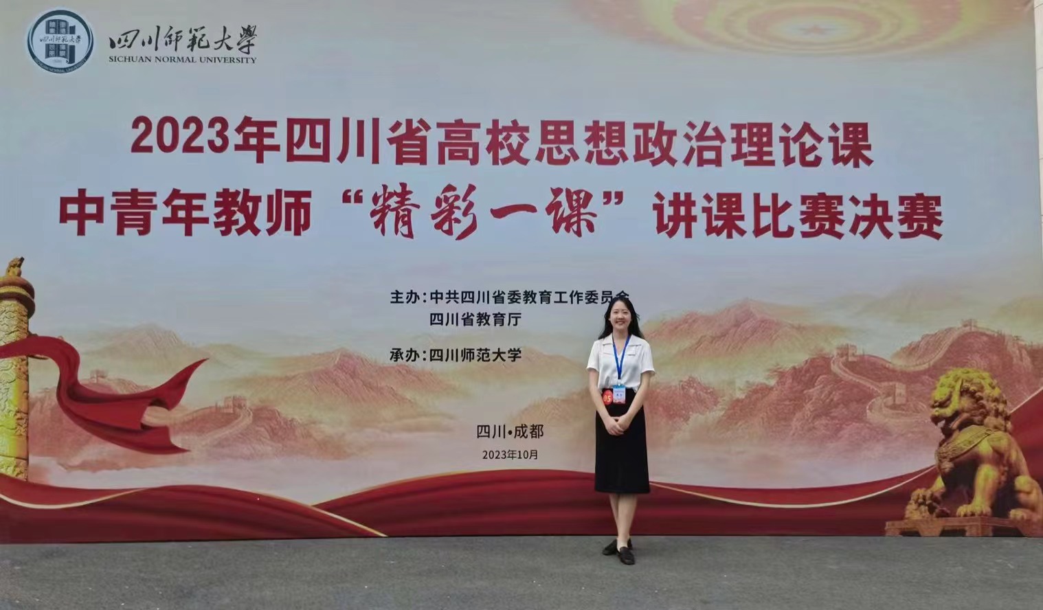 1028-29日,2023年四川省高校思想政治理论课中青年教师“精彩一课”讲课比赛决赛在四川师范大学举行,此次大赛旨在充分展示全省各高校深化思政课改革创新的成果,推动新时代高校思想政治理论课高质量发展。beat365官网高度重视,精心组织,青年教师丁玉洁参赛并荣获“特等奖”。