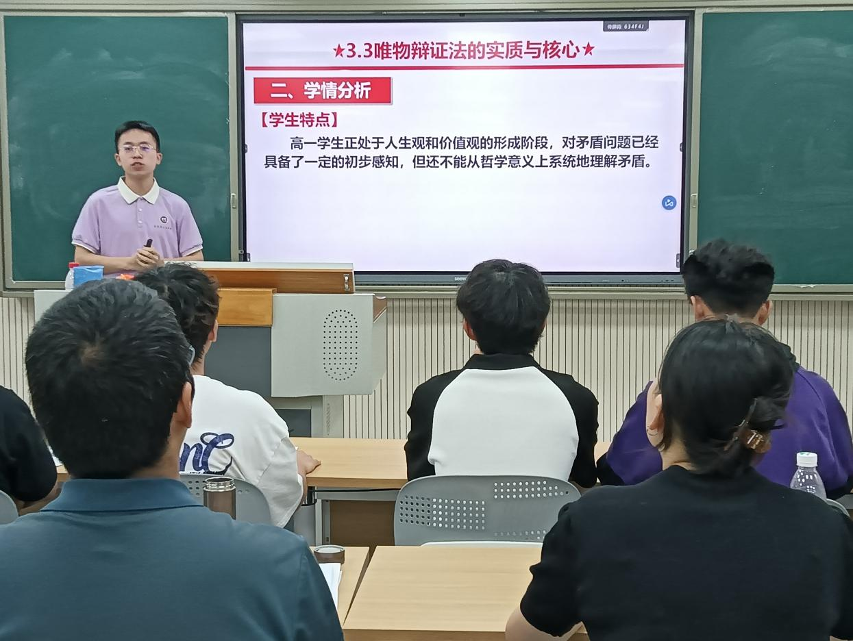 为进一步提升师范生的综合教育素质和教学技能,搭建“以赛促教,以赛促学,以赛促改”的教学交流平台,5月26日、27日,学院在东区B202智慧教室分别开展了2025年师范生教学能力大赛初中组和高中组的决赛来自思想政治教育专业大一至大三年级的19名选手经初赛选拔进入到决赛的最终角逐中。