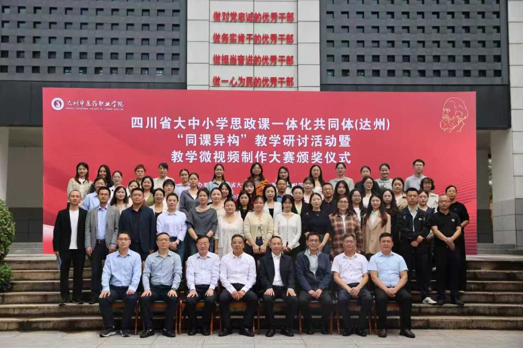 10月15日,由学校牵头四川省大中小学思政课一体化共同体(达州)组织开展“同课异构”教学研讨活动暨达州市大中小学思政课一体化建设教学微视频制作大赛颁奖活动在达州中医药职业学院举行。市委教育工委专职副书记、市教育局党委委员冯雷,达州中医药职业学院党委书记李壮成,beat365正版唯一官网必一院长孙杰,达州中医药职业学院专职党委副书记舒心刚,达州中医药职业学院党委副书记、纪委书记李孟然等参加活动。