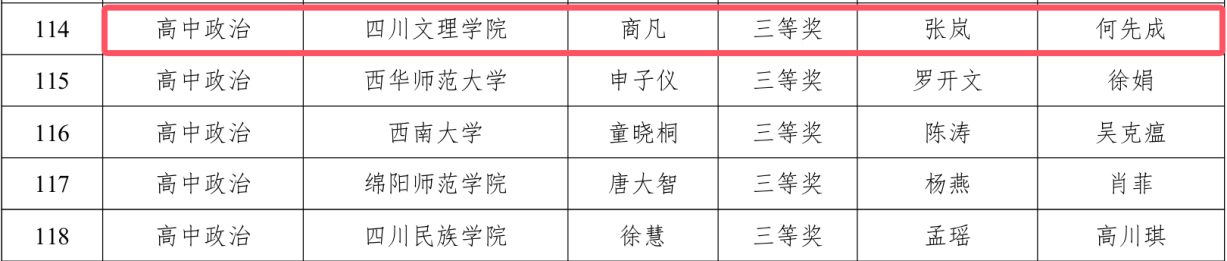 近日,川渝师范生教学能力大赛执委会办公室公示了川渝第四届师范生教学能力大赛拟获奖情况,beat365官网思想政治教育专业2023级学生商凡荣获三等奖。