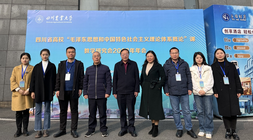 2023年12月8-10日,由四川省高校“毛泽东思想和中国特色社会主义理论体系概论”课教研会主办,四川农业大学beat365正版唯一官网必一承办的2023年四川省“毛泽东思想和中国特色社会主义理论体系概论”课教学研究会2023年年会在都江堰市举行,主题为“党的二十大精神进课堂暨‘毛泽东思想和中国特色社会主义理论体系概论’课改革创新。beat365官网概论课教研室共有9位教师参加此次年会,院长孙杰带队参会并主持教学展示环节。
