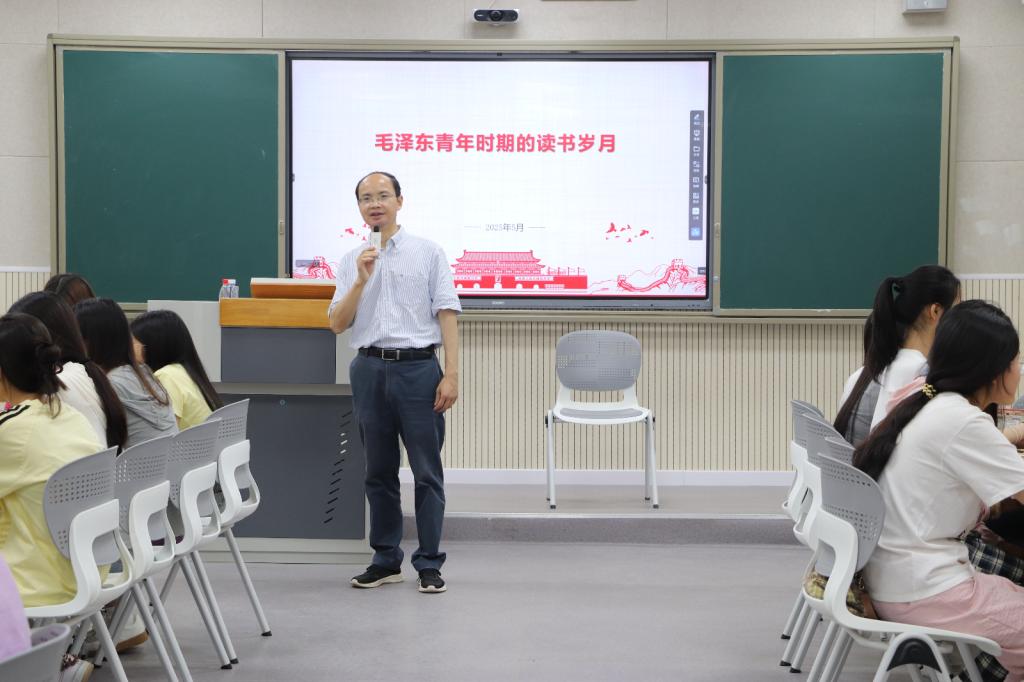 周玙璐在听完课程后说到“在黄书记的讲授中,我感悟到青年毛泽东读书的纯粹和崇高,志在“改造社会、改造中国”。17岁的他,在离家求学之际,抄录“孩儿立志出乡关,学不成名誓不还,埋骨何须桑梓地,人生无处不青山”赠父,将一心向学、志在四方的决心展露无遗。读揭露日本侵华和袁世凯卖国罪行的《明耻篇》,他在封面上奋笔题下“五月七日,民国奇耻”,那时起,便把个人命运与国家、民族紧密相连。反观我们,身处和平繁荣时代,更应思考如何将个人理想融入国家发展,像毛泽东一样,树立远大志向,为国家富强、民族复兴贡献力量。”