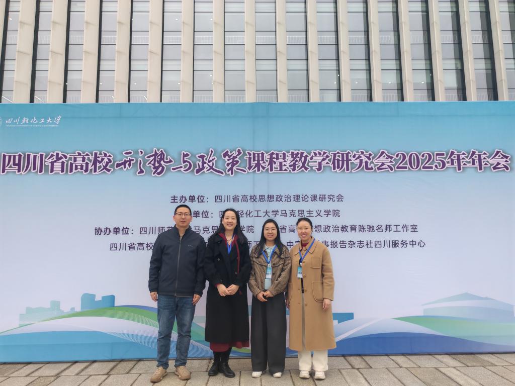 为深入学习贯彻党的二十届三中全会精神、习近平总书记关于学校思想政治工作和思政课建设的重要指示批示精神,牢牢把握教育的政治属性、人民属性、战略属性,守正创新推动全省思政课建设高质量发展,推动习近平新时代中国特色社会主义思想进教材、进课堂、进头脑。3月22日—23日,四川省高校“形势与政策”课程教学研究会2025年年会在四川轻化工大学举行。此次会议由四川省教育厅指导,四川省高校思想政治理论课研究会主办,四川轻化工大学beat365正版唯一官网必一承办,四川师范大学beat365正版唯一官网必一、四川省高校思想政治教育陈驰名师工作室、四川省高校思想政治教育唐晓勇名师工作室、中宣部时事报告杂志社四川服务中心协办。学院形势与政策教研室主任梁云,青年教师黄珊、丁玉洁、陈春莲参加会议。