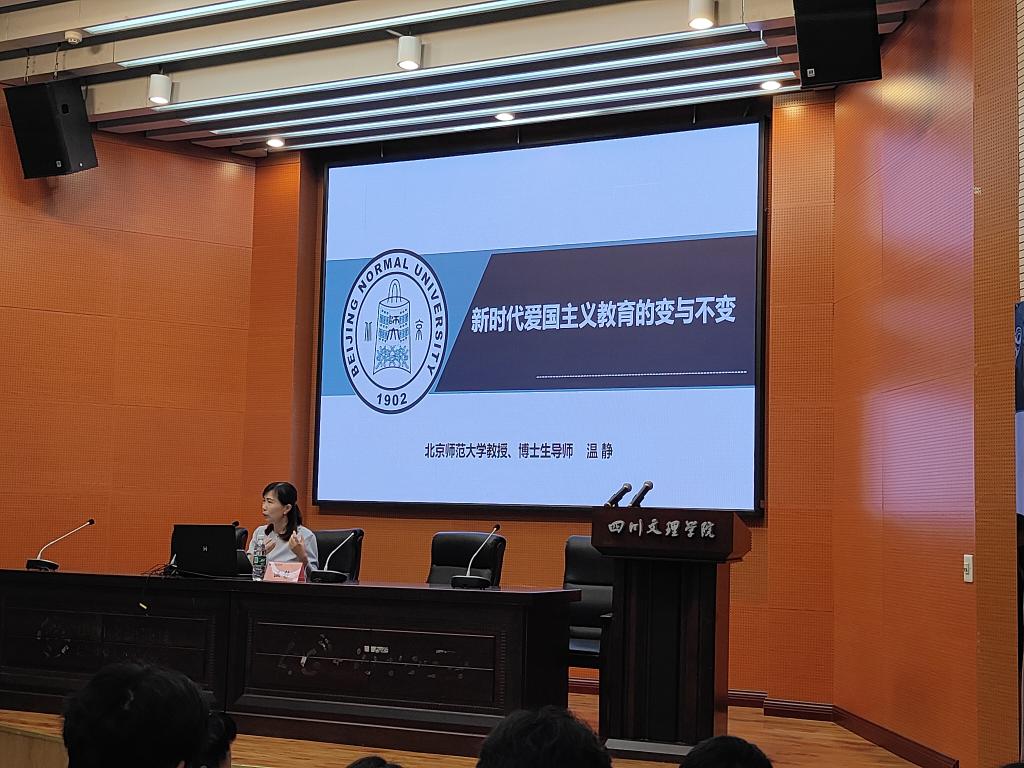 5月29日晚,应学院邀请,北京师范大学beat365正版唯一官网必一温静教授来我校作“红漫巴山讲堂”系列讲座第三讲——《新时代爱国主义教育的变与不变》。讲座由学校党委常委、副校长徐晓宗主持。