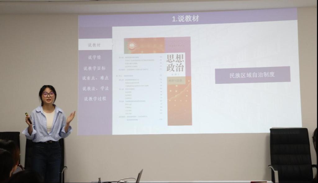 随后,第二届川渝师范生教学能力大赛三等奖、第九届“田家炳杯”全国师范院校师范生教学技能竞赛三等奖获得者谢芯悦围绕思想政治学科核心素养,从教学设计、说课与讲课三大板块,以案例解析的方式,分享了教学技巧。十三届“华文”师范院校思想政治教育专业师范生教学技能测试二等奖获得者李明珠依据思想政治课程标准,剖析备赛要点,涵盖PPT制作、表达技巧及赛后复盘策略,为在场同学们提供了实用的备赛指南。两位优秀的大四学姐的经验分享干货满满,为在场的学弟学妹们提供了实操参考。