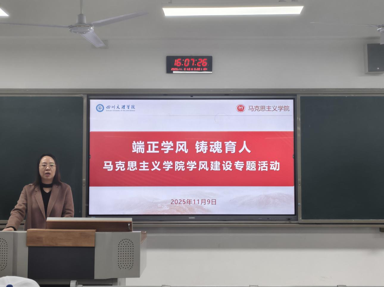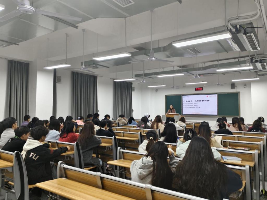 为持续深化学风建设,扎实落实“铸魂育人”根本任务,2025 年11月9日下午,beat365官网在莲湖东区教学楼 B302 教室开展“端正学风 铸魂育人”学风建设专题活动。学院党委副书记周春滟主持活动,各班班委全程参与专题学习。