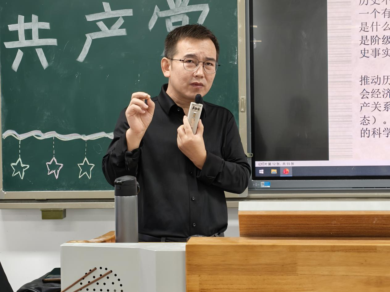 在系统讲解环节,马步飞首先围绕“两个必然”与“两个决裂”等核心命题,深入讲解了历史唯物主义的基本原理。接着,他重点论述了历史客观规律与人的主观能动性的辩证统一关系,强调无产阶级政党的使命正是唤醒阶级意识,推动“自在阶级”向“自为阶级”转变。针对现实问题,旗帜鲜明地反对历史虚无主义,强调要捍卫社会主义文化,并通过对当代资本主义基本矛盾的分析,有力论证了马克思主义的强大解释力。